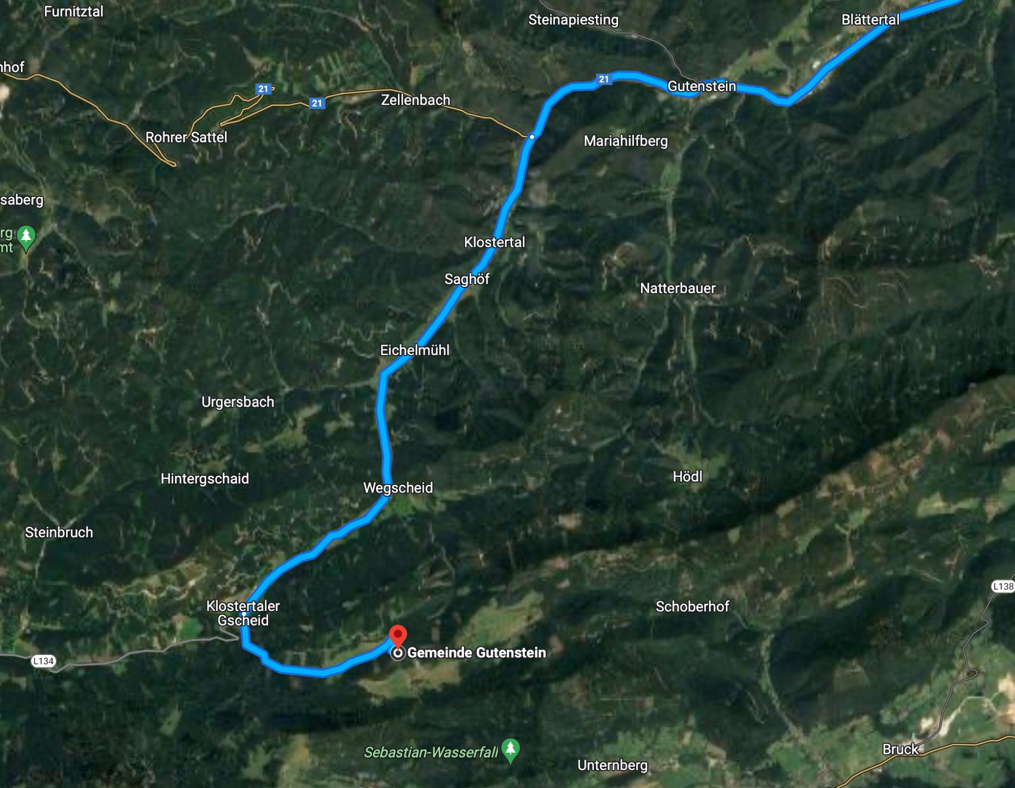 Variante 2 beim Schloss Somaruga über die Schwarzgrabenstraße - diese ist flacher, länger und auch im Winter mit Allrad befahrbar. Durch die Unterstützung der Gemeinde Gutenstein ist die Zufahrt bis zum Gasthof möglich.